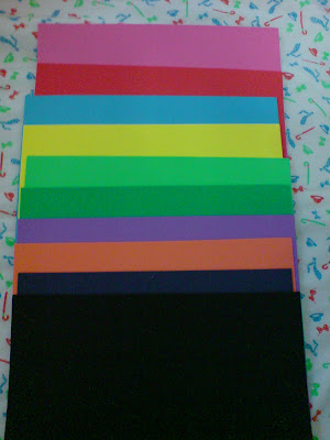 Folhas de EVA, seria interessante comprar umas duas de cores que se contrastem, tipo: Qualquer cor clara com Preto ex: Amarelo, verde e azul claro, enfim.. ou cor escura com Branco, também vai das cores prefeidas do Bofe ou da Minha né zentchy? (cada folha custa por volta de $1,60)